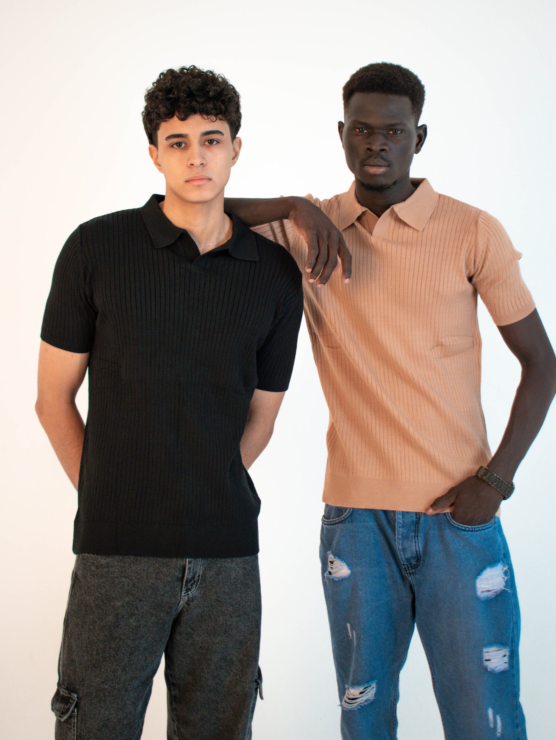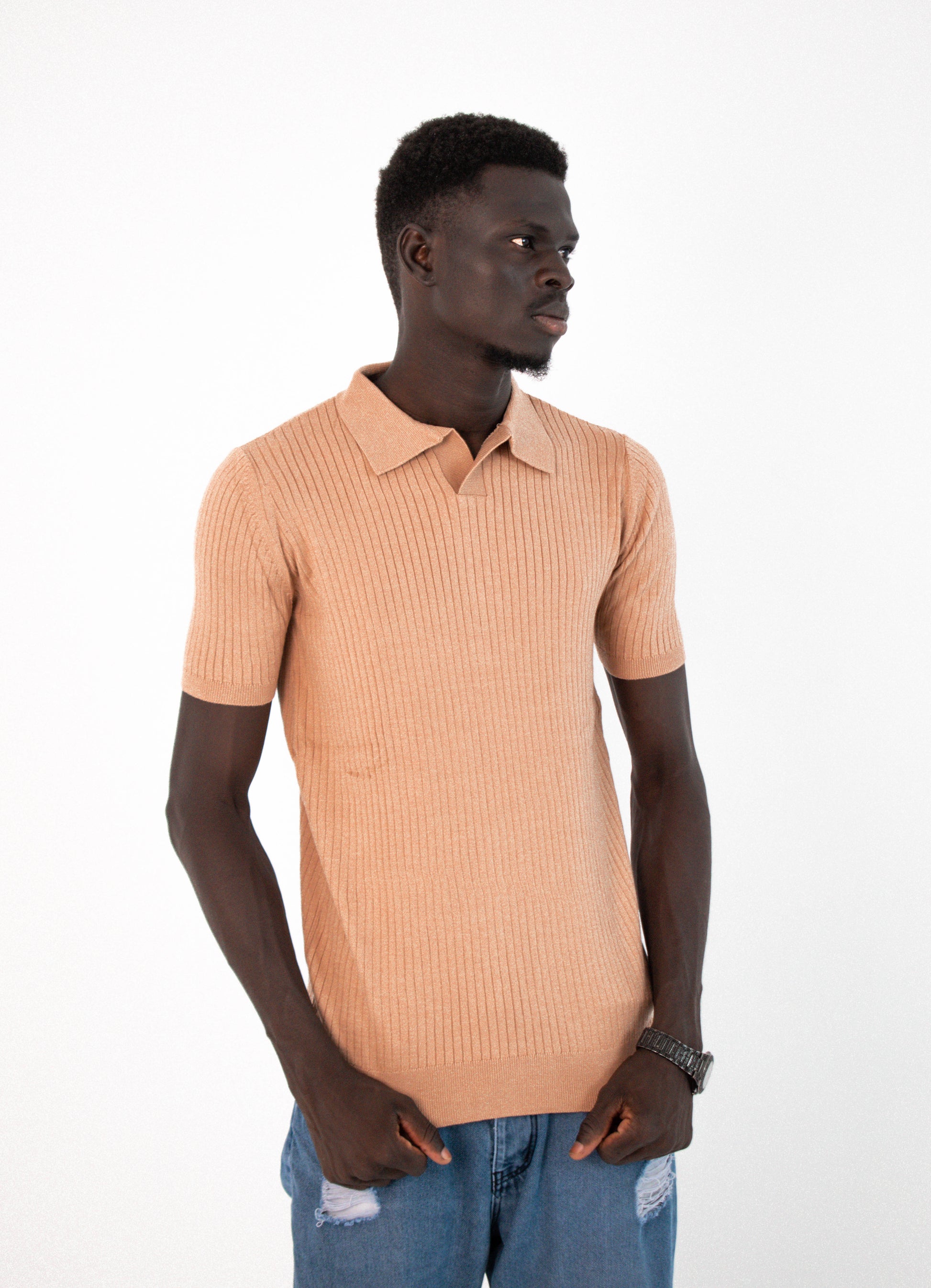 Timeless Design: Ribbed knit polo that gives a classic and versatile look.